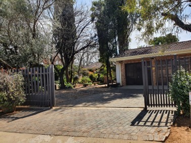 Driving into Dawn's Garden Guesthouse, automatic sliding Gate offering free Parking Places, secured, and camera protected - to the left, .